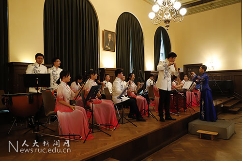 应德国莱比锡孔子学院邀请,南京大学民乐团于10月6号做客莱比锡音乐学校,为观众们献上一场演出。南京大学民族乐团成立于1996年,成员全部由文、史、哲、经、管、法、理、工、医等各学科专业的本科生、研究生组成;乐团弓弦、弹拨、吹奏、打击等各种声部齐全,以合奏、齐奏、重奏、独奏等形式演奏中国民族音乐。
