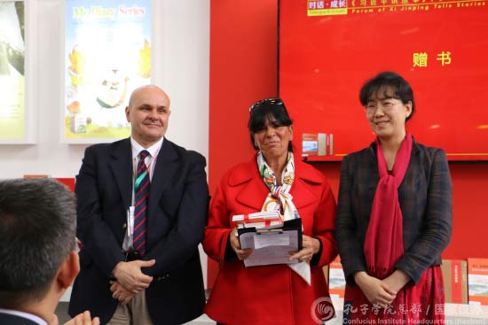 当天下午,第56届博洛尼亚国际儿童书展的中国展台非常热闹,由中国少年儿童新闻出版总社与博洛尼亚大学出版社联合主办,博洛尼亚大学孔子学院承办的“对话·成长——《习近平讲故事》(少年版)海外出版论坛”拉开帷幕。